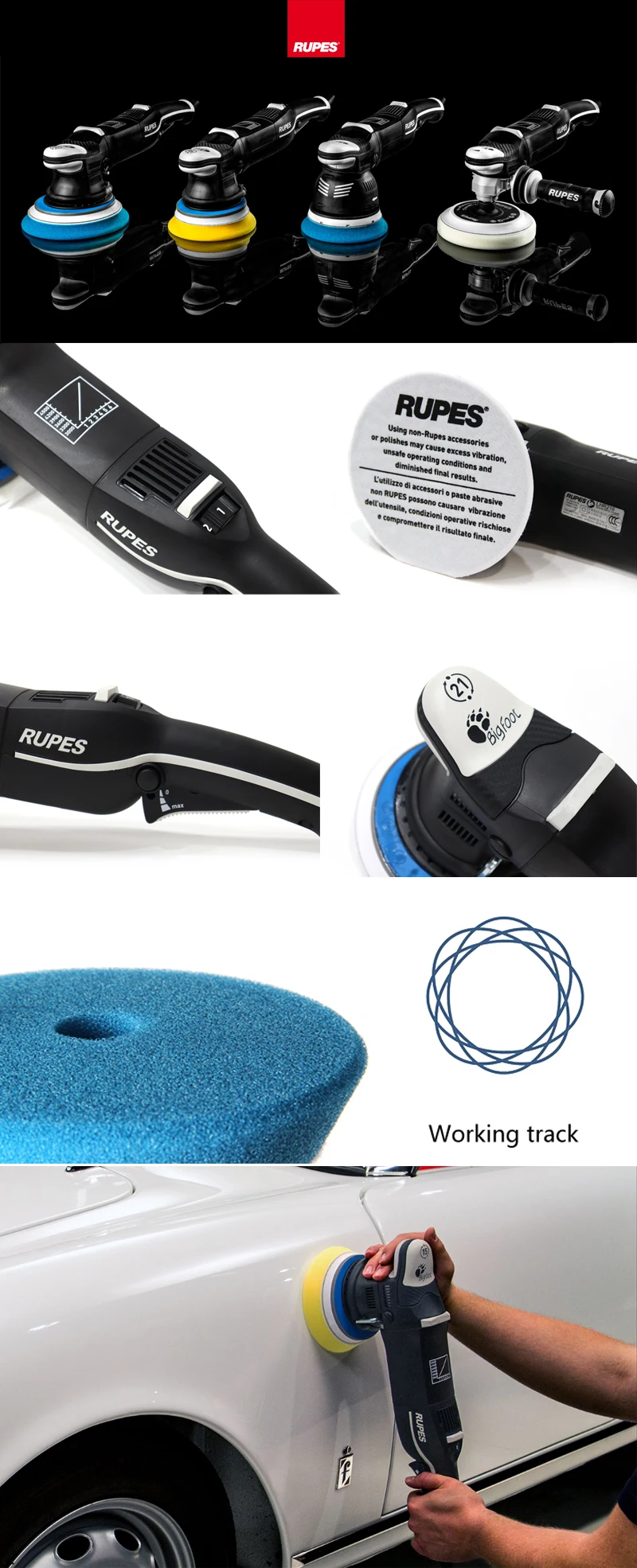 RUPES LHR21III Big Foot Random Orbital Polisher Machine DA Dual Action Car Polisher for Detailing